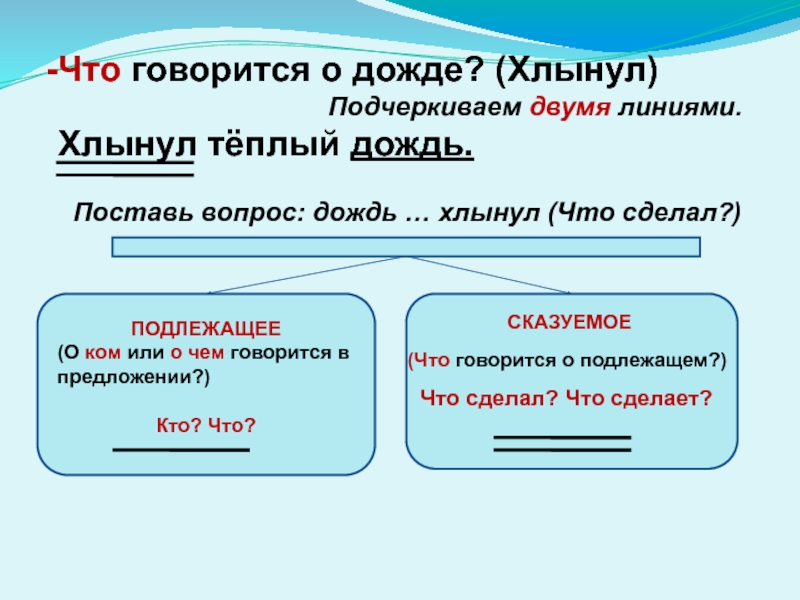 (Что говорится о подлежащем?)
