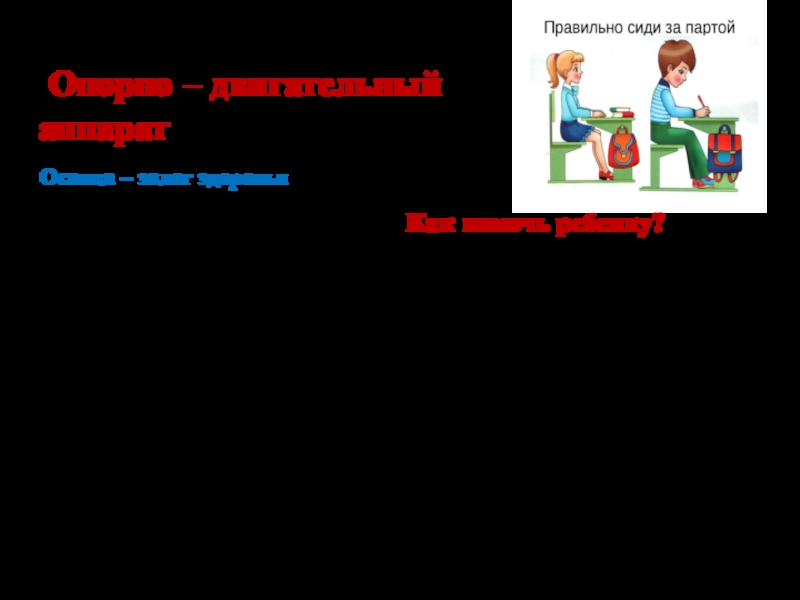 1.Научить правильной осанке (спина прямая, живот втянут, взгляд перед собой).