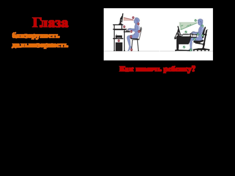 2.Стол и стул регулируются по высоте (ступни на полу, колени под прямым углом, опора на обе руки, локти не свисают со стола).