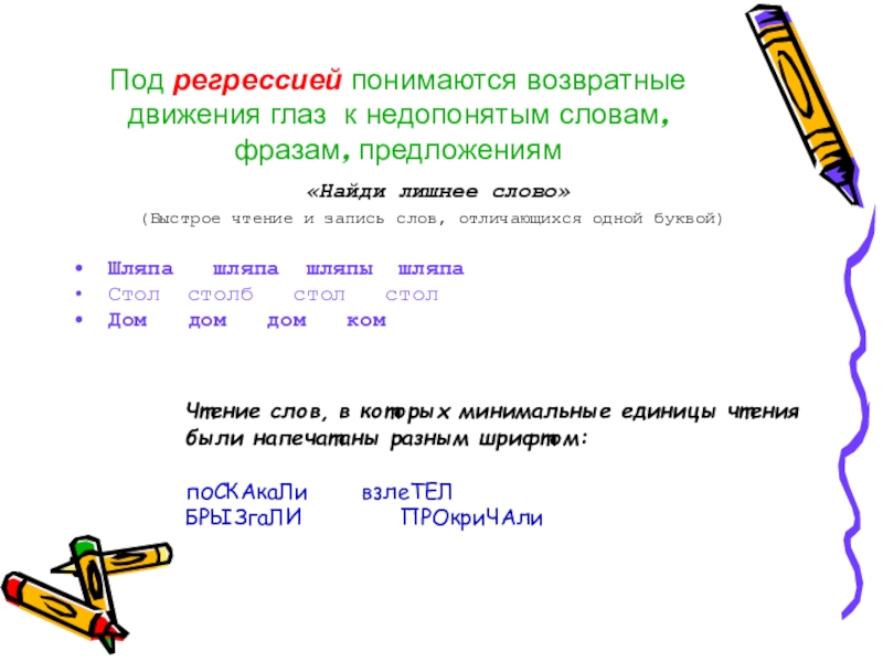 Чтение слов, в которых минимальные единицы чтения были напечатаны разным шрифтом: