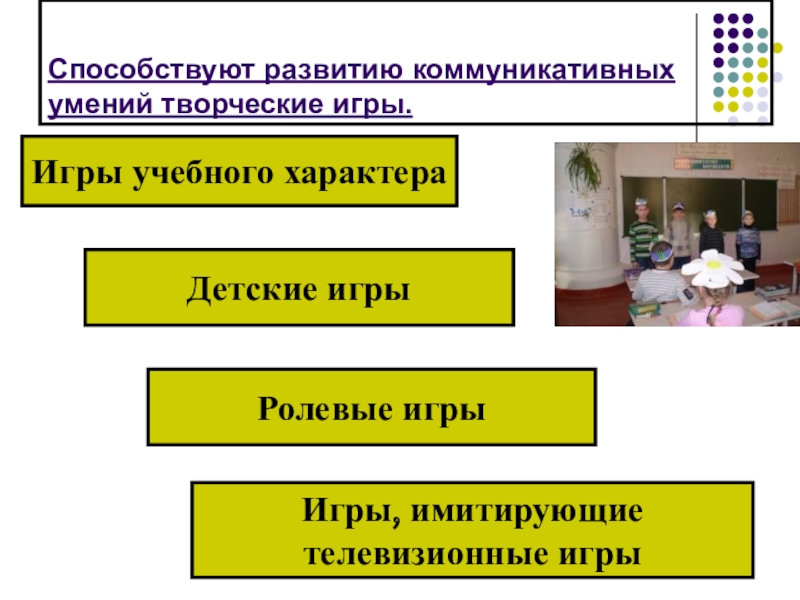 Слайд 18Способствуют развитию коммуникативных умений творческие игры.