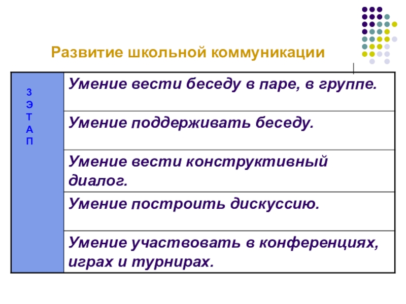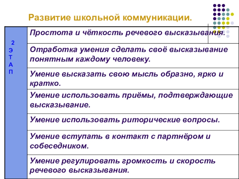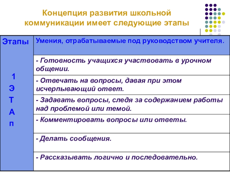 Слайд 14Концепция развития школьной коммуникации имеет следующие этапы