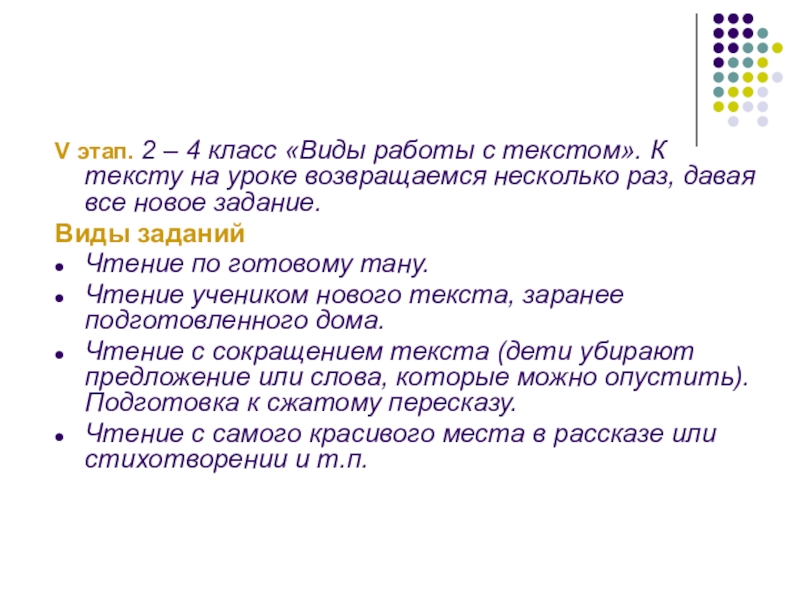 V этап. 2 – 4 класс «Виды работы с текстом». К