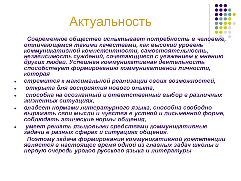 Поэтому задача формирования коммуникативной компетенции является в настоящее время одной из главных задач школы и первую очередь уроков русского языка и литературы
