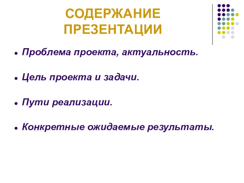Слайд 3СОДЕРЖАНИЕ ПРЕЗЕНТАЦИИ