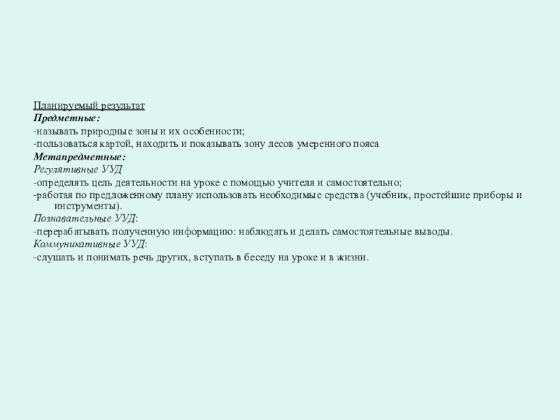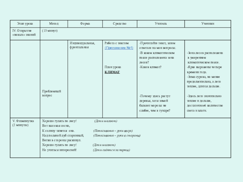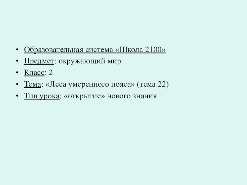 Данный урок окружающего мира относится к типу урока «открытия» нового знания. В рабочей программе тема «Леса умеренного пояса» разбита на три урока, данный урок является первым. Учебные задания соответствуют последовательности цели урока.