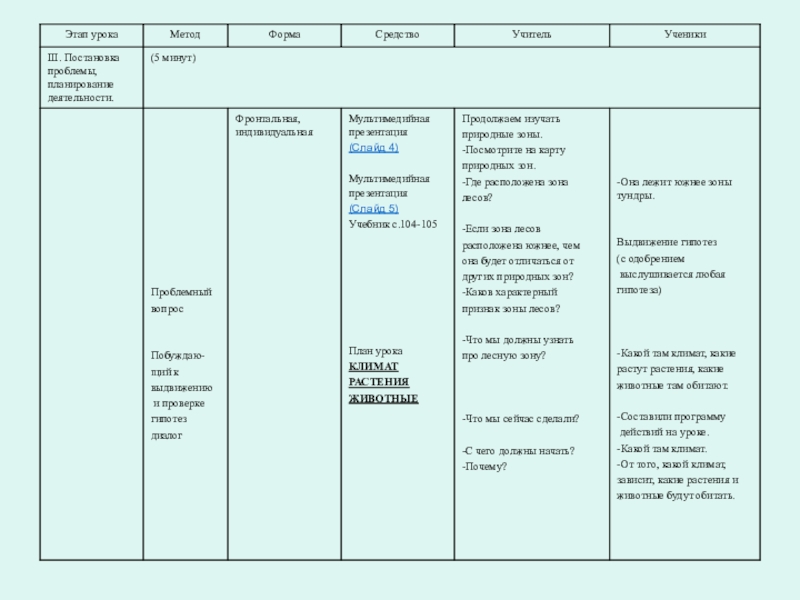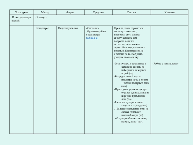 В начале изучения блока о природных зонах класс заранее был разделен на группу «ботаников» и «зоологов» - для более подробного изучения растений и животных той или иной природной зоны. В качестве домашней работы учащиеся получили творческие задания по группам, что тоже способствовало не только деловой, но и творческой атмосфере урока.