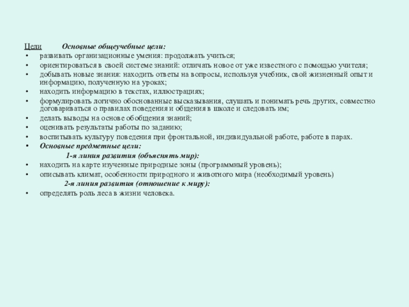 Цели урока были поставлены по двум линиям развития: объяснять мир и отношение к миру, включающими в себя образовательные, развивающие и воспитательные цели. Цели данного урока соответствуют стандартным требованиям программы и связаны с предыдущими учебными занятиями.