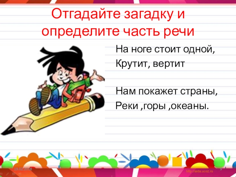 Слайд 9Отгадайте загадку и определите часть речи