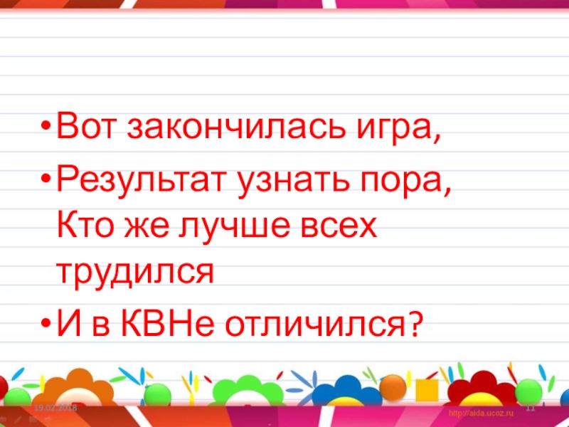 Слайд 11Вот закончилась игра,