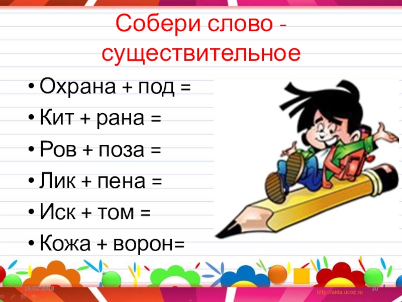 Слайд 10Собери слово -существительное