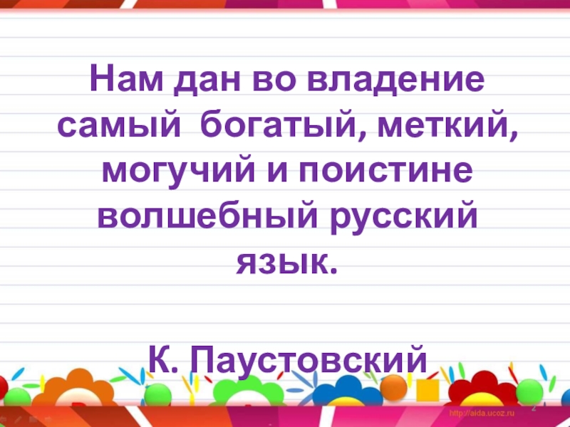 Слайд 2Нам дан во владение самый богатый, меткий, могучий и поистине волшебный