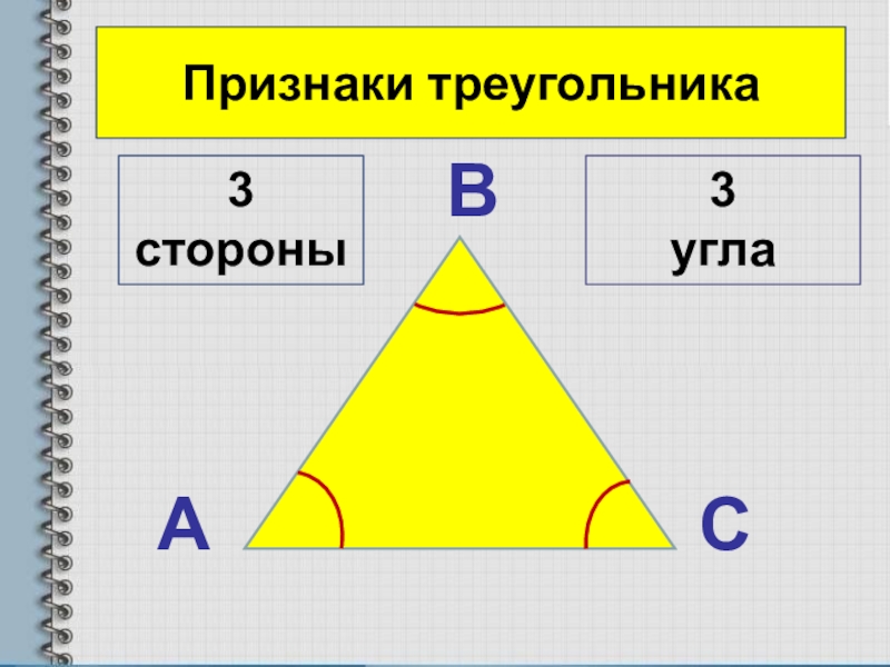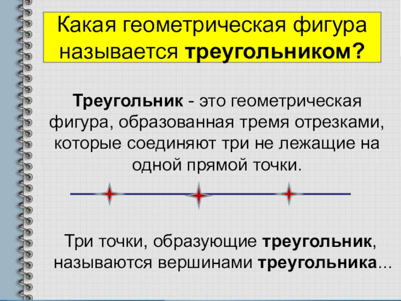Три точки, образующие треугольник, называются вершинами треугольника...