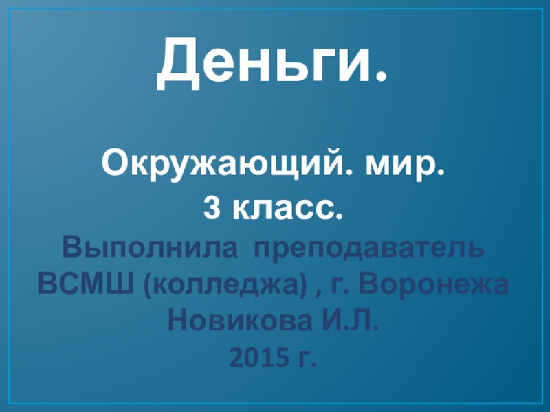 Деньги.Окружающий. мир.3 класс.Выполнила преподаватель ВСМШ (колледжа) , г. Воронежа Новикова И.Л. 2015 г.