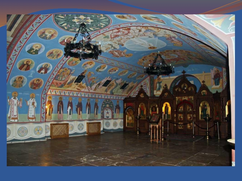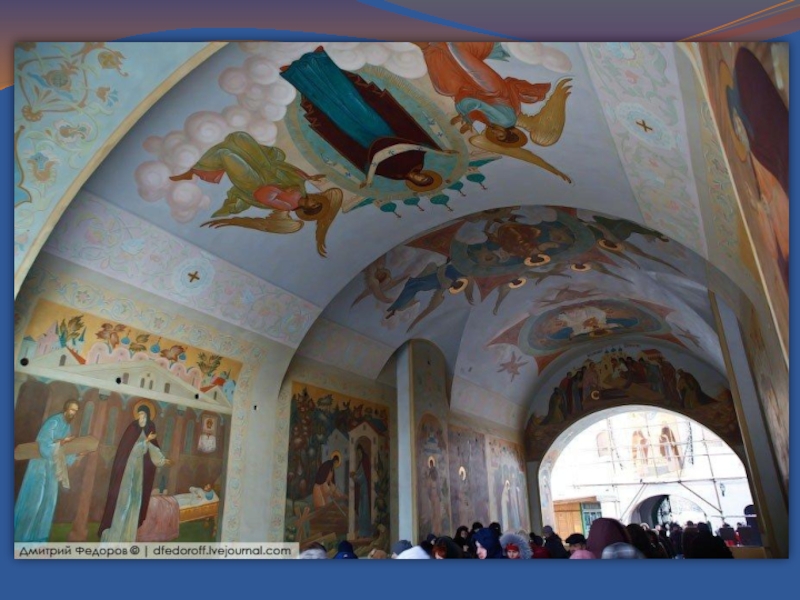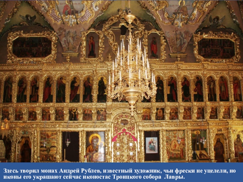 Слайд 30Здесь творил монах Андрей Рублев, известный художник, чьи фрески не уцелели,