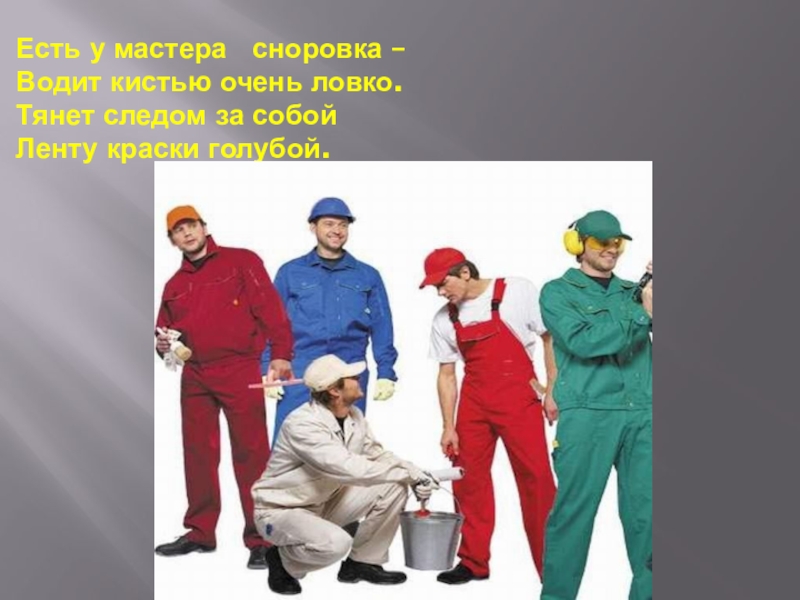 Слайд 7 Маляр Есть у мастера сноровка – Водит кистью