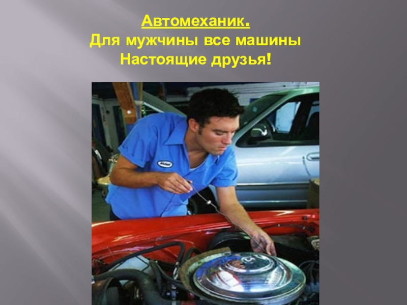 Слайд 11Автомеханик. Для мужчины все машины Настоящие друзья!