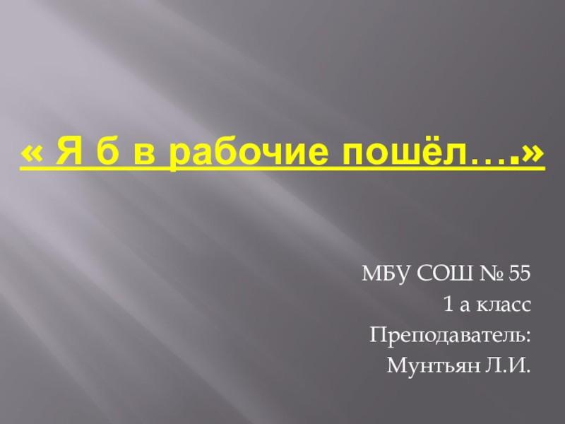 « Я б в рабочие пошёл….»МБУ СОШ № 551 а классПреподаватель:Мунтьян Л.И.