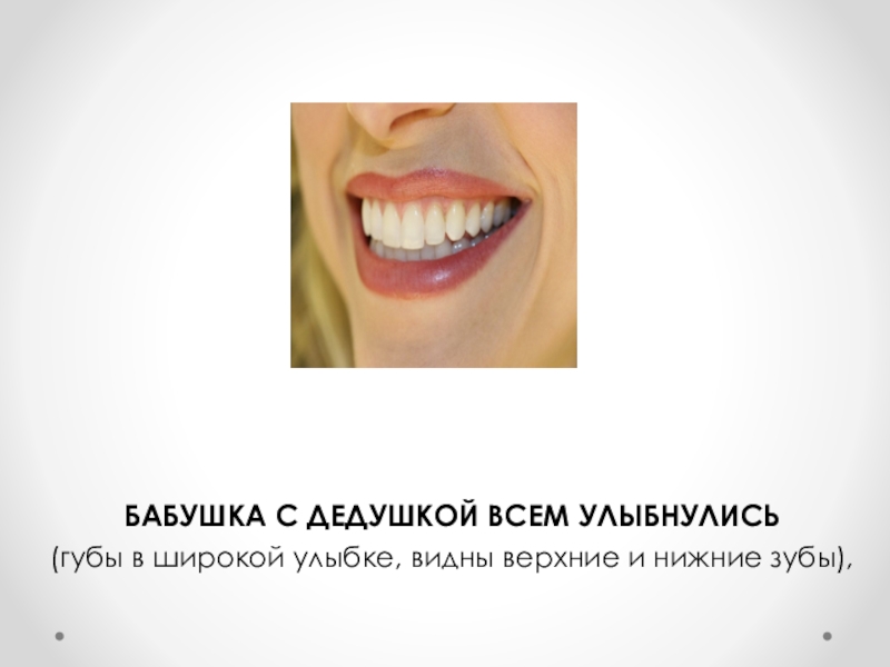 БАБУШКА С ДЕДУШКОЙ ВСЕМ УЛЫБНУЛИСЬ (губы в широкой улыбке, видны верхние и нижние зубы),