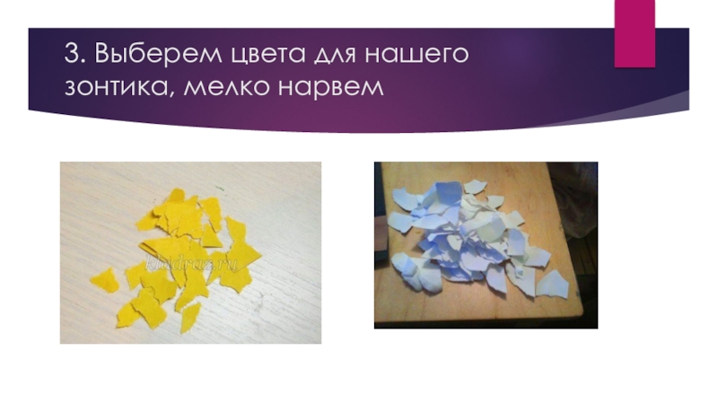Слайд 83. Выберем цвета для нашего зонтика, мелко нарвем