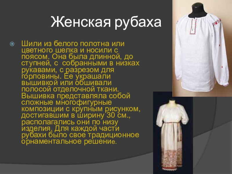 Слайд 15Женская рубаха