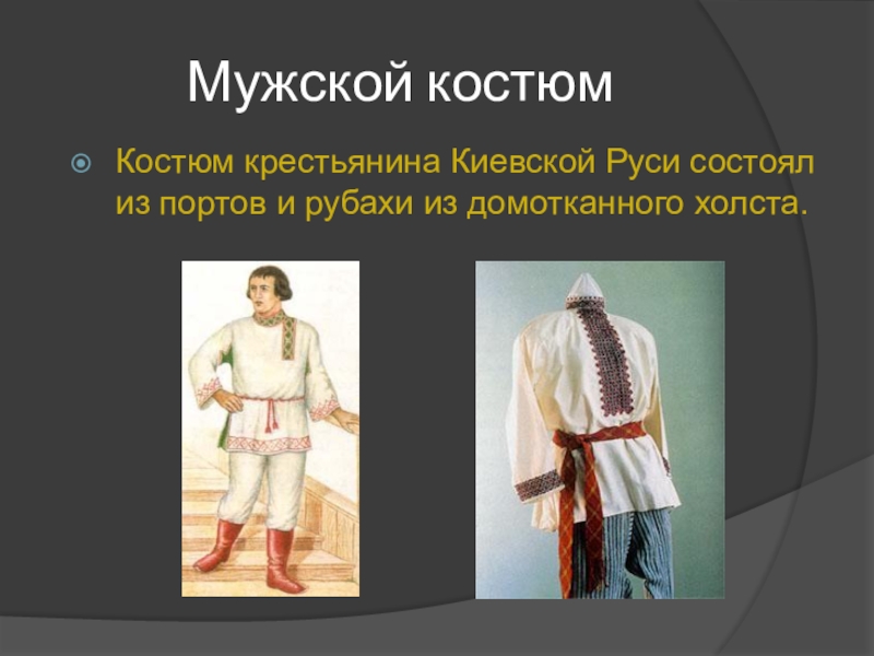Костюм крестьянина Киевской Руси состоял из портов и рубахи из