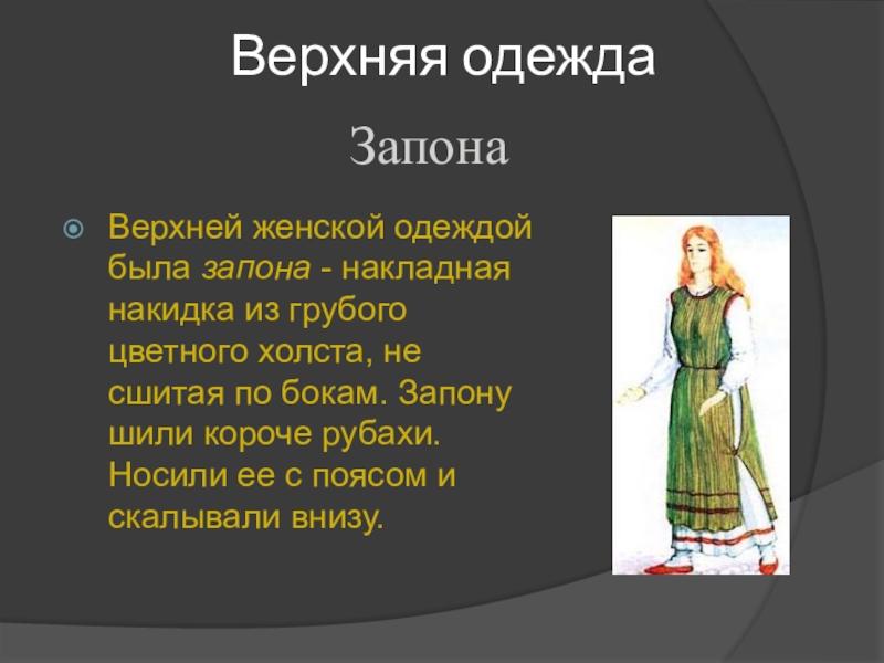 Верхней женской одеждой была запона - накладная накидка из