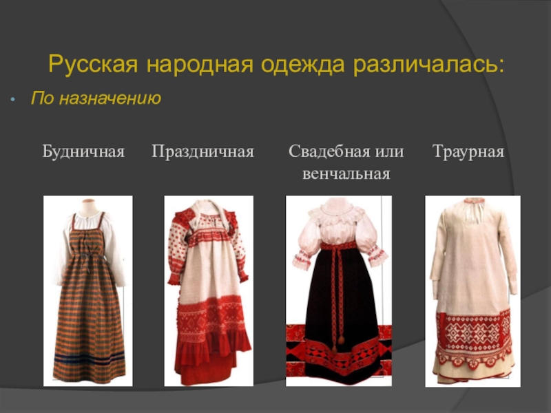 Слайд 3Русская народная одежда различалась: