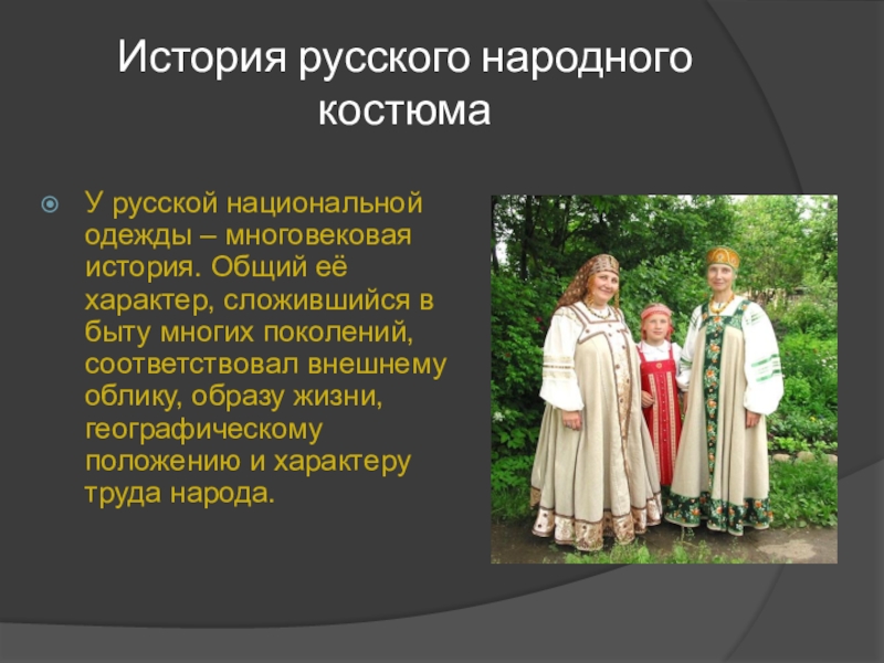 Слайд 2История русского народного костюма
