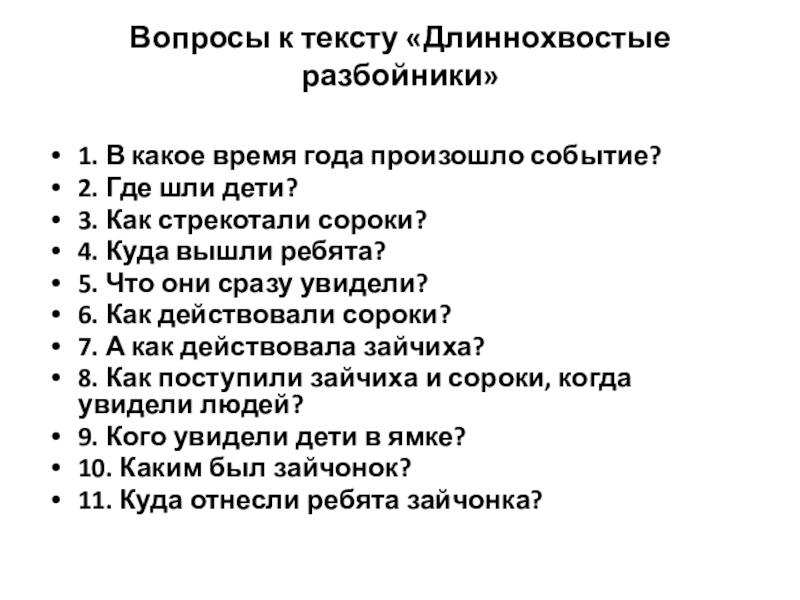 Слайд 4Вопросы к тексту «Длиннохвостые разбойники»