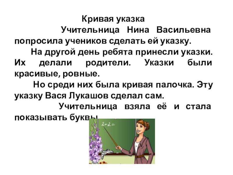 Учительница Нина Васильевна попросила учеников сделать ей указку.