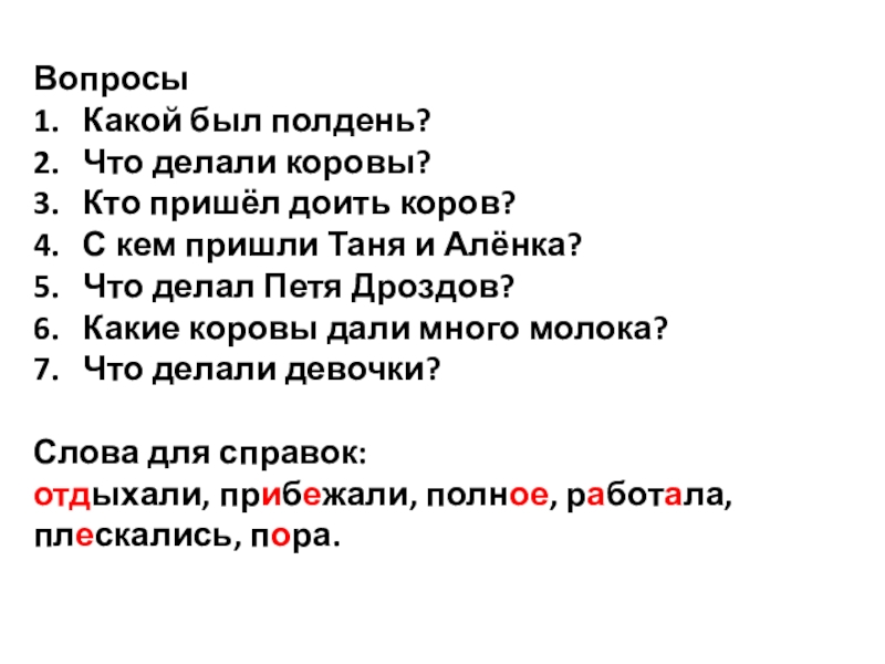 Был жаркий полдень. Коровы отдыхали в тени среди кустов. Доярки