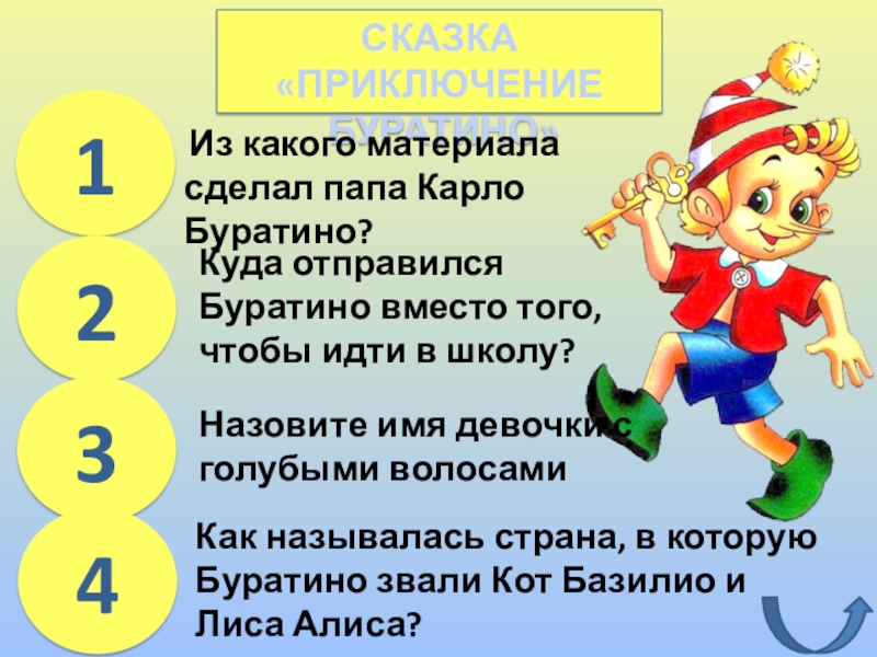 Как называлась страна, в которую Буратино звали Кот Базилио и Лиса Алиса?