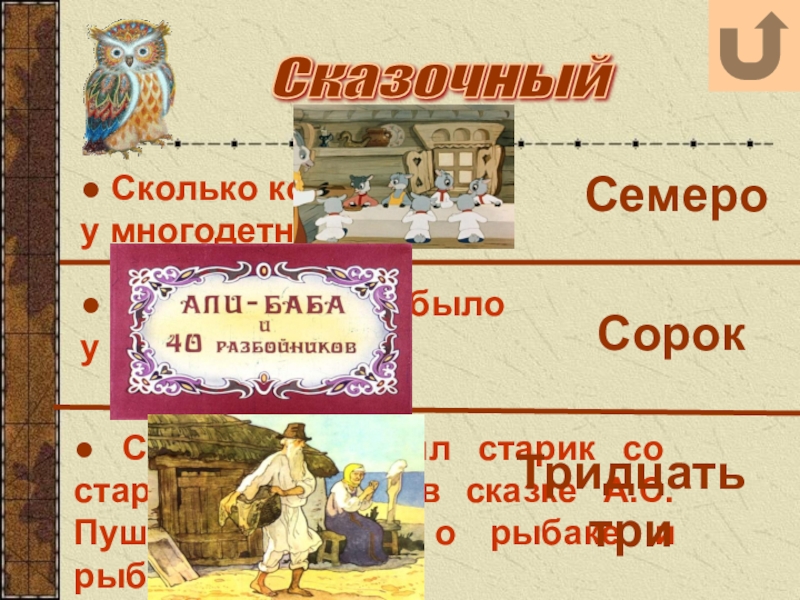 ● Сколько лет жил старик со старухой у моря в сказке А.С.Пушкина «Сказка о рыбаке и рыбке»?
