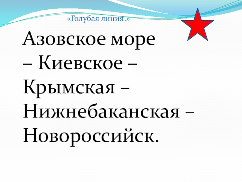 Азовское море – Киевское – Крымская – Нижнебаканская – Новороссийск. «Голубая линия.»