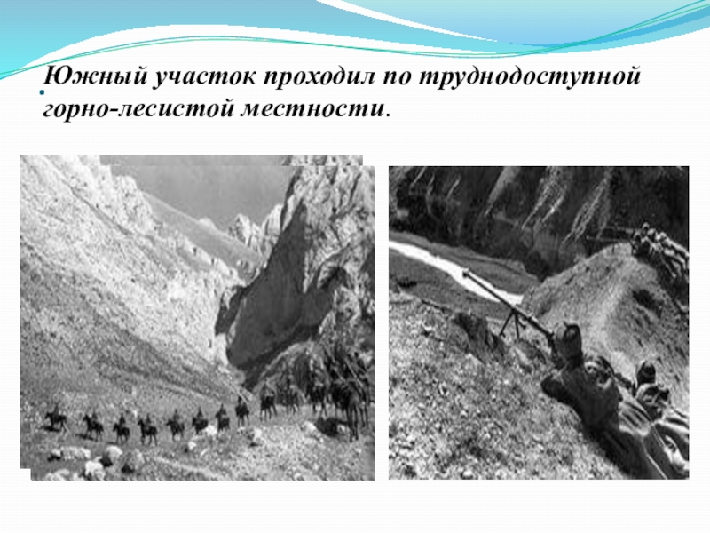 Южный участок проходил по труднодоступной горно-лесистой местности.
