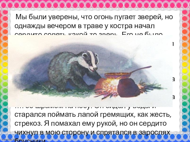 Слайд 16 Мы были уверены, что огонь пугает зверей, но однажды вечером в