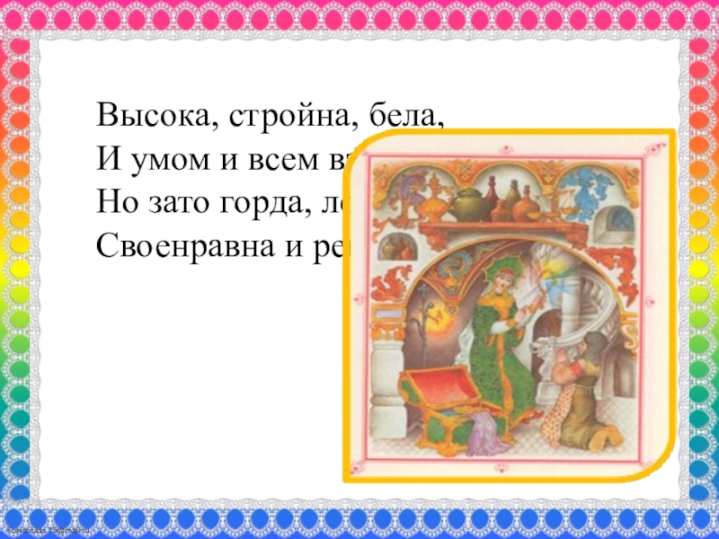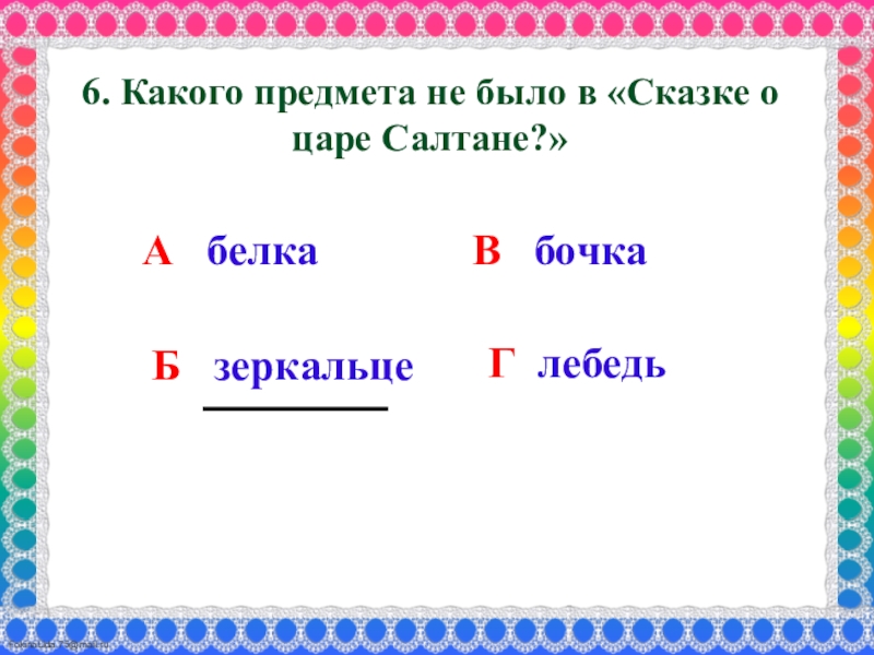 Слайд 256. Какого предмета не было в «Сказке о царе Салтане?»