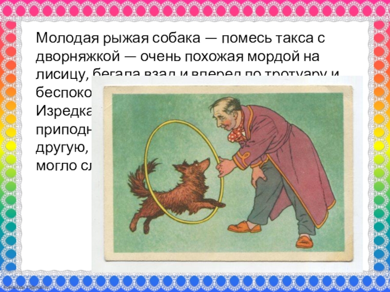 Слайд 13Молодая рыжая собака — помесь такса с дворняжкой — очень похожая