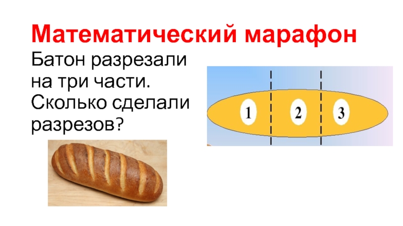 Математический марафонБатон разрезали на три части. Сколько сделали разрезов?