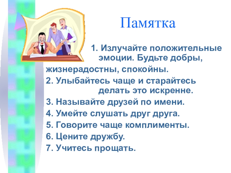 Памятка             1. Излучайте положительные