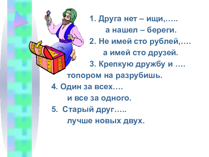 1. Друга нет – ищи,…..