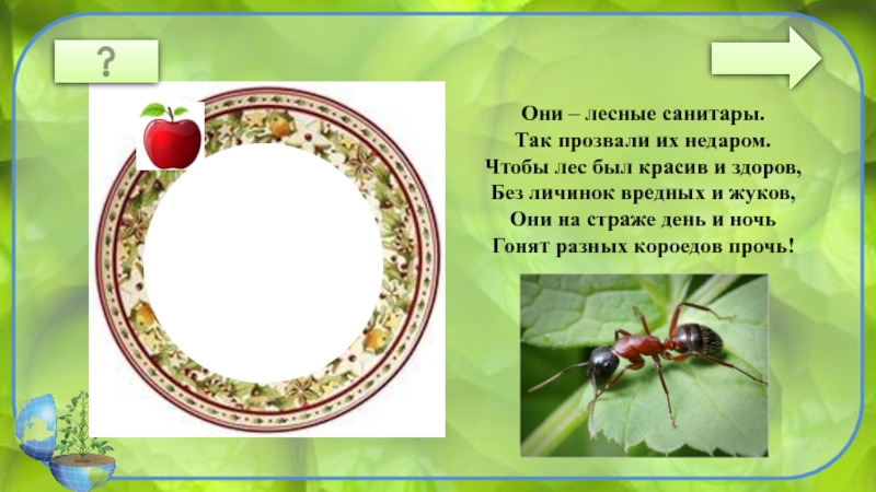 МУРАВЬИОни – лесные санитары.Так прозвали их недаром.Чтобы лес был красив и здоров, Без личинок вредных и жуков,