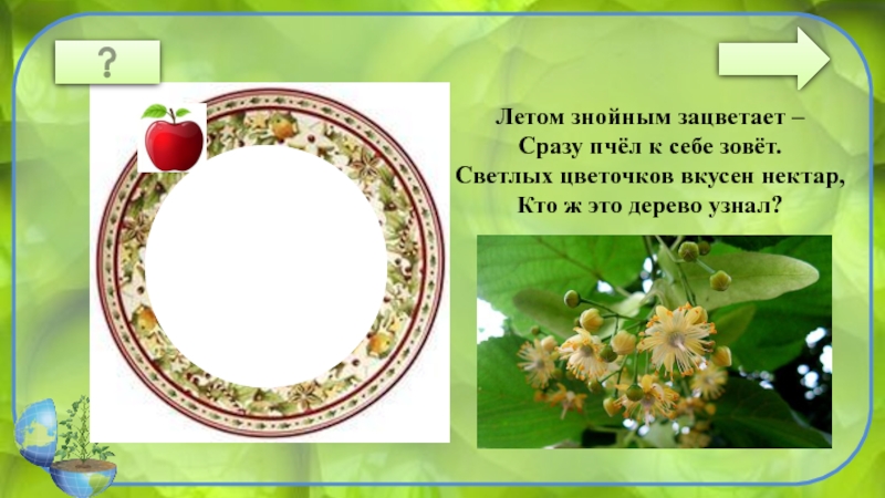 ЛИПАЛетом знойным зацветает –Сразу пчёл к себе зовёт.Светлых цветочков вкусен нектар,Кто ж это дерево узнал?
