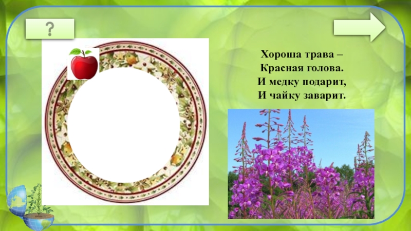 ИВАН-ЧАЙХороша трава –Красная голова.И медку подарит, И чайку заварит.