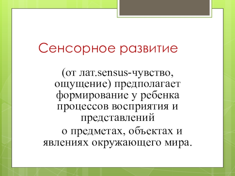 (от лат.sensus-чувство,ощущение) предполагает формирование у ребенка процессов восприятия и