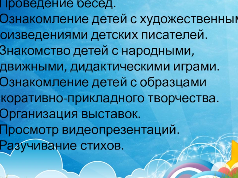 4. Подбор информационного материала, детской и научно-познавательной литературы, иллюстраций, аудио-, видеозаписи, фотографий.