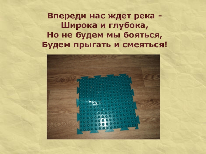 Впереди нас ждет река -Широка и глубока,Но не будем мы бояться,Будем прыгать и смеяться!
