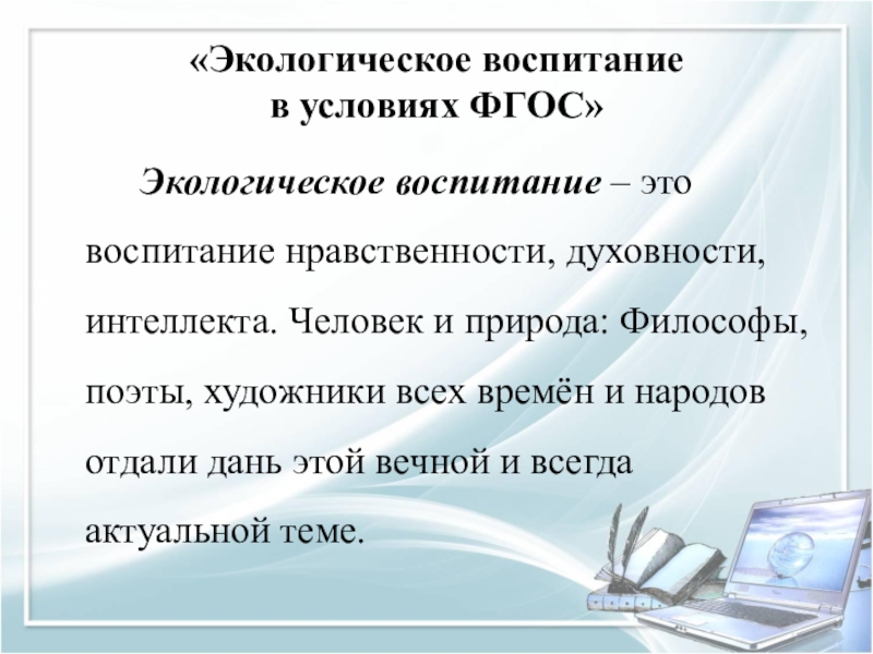 Слайд 40Экологическое воспитание в условиях дошкольного учреждения существуют не обособленно, а взаимосвязано.