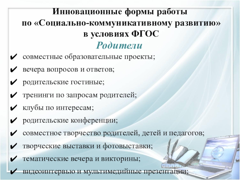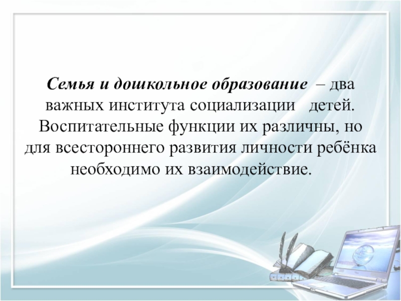 Слайд 54Семья и дошкольное образование – два важных института социализации детей. Воспитательные
